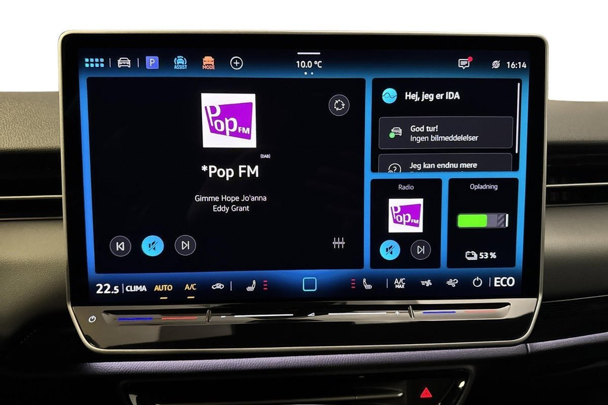 Udstyr: - Glacier White Metallic lakering - 19" letmetalfælge Hudson - LED forlygter og LED baglygter - Infotainment med stor 15" touchskærm - Digitalt cockpit og stemmebetjening - App-Connect Wireless: Apple CarPlay & Android Auto - Head-up display med Augmented Reality - Adaptiv fartpilot m. Stop&Go og Blind Spot-sensor - Lane Assist og Front Assist med nødbremse - Climatronic klimaanlæg (2 zoner) - Ambientebelysning i 10 farver + belyste dørhåndtag - Komfortsæder med indstillelig varme og højdejustering - Multifunktionslæderrat - Isofix på bagsæder og passagersæde foran - Variabel bagagerumsbund og bagagerumsnet - Træthedsregistrering - Parkeringssensorer for og bag, bakkamera - Elektrisk justerbare og opvarmede sidespejle - Varmepumpe - Tyverialarm og dæktrykskontrol - Forberedelse til navigation - Regnsensor - Automatisk nedblændeligt bakspejl - Forrude og sideruder med støjsvag og varmedæmpende glas - Førstehjælpskit og advarselstrekant - Anhængertræk med svingbar krog og el-frigørelse